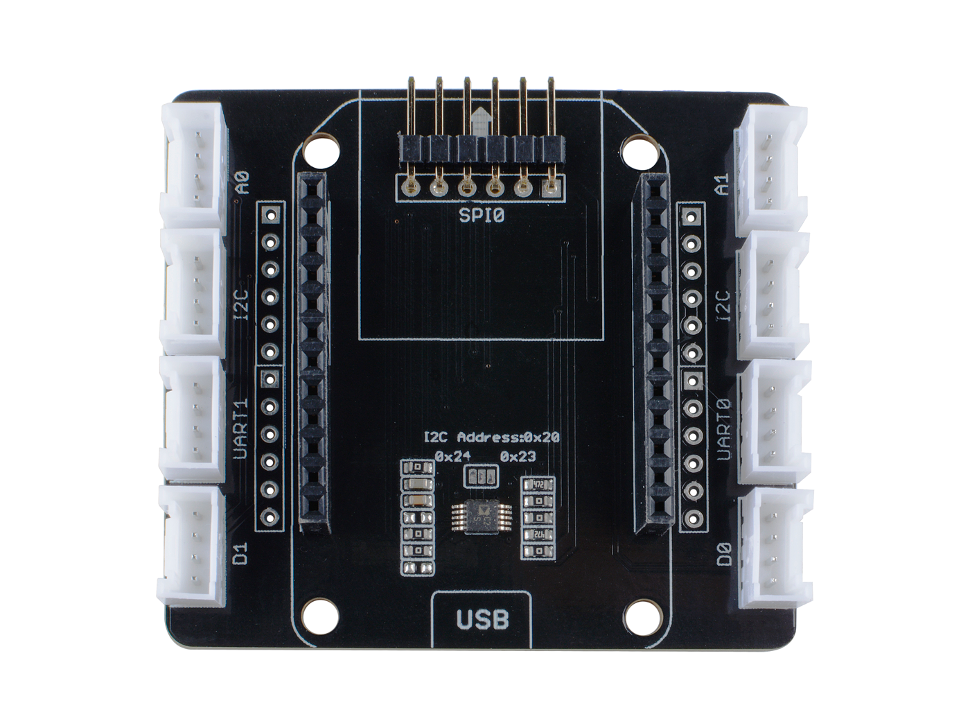Since Azure Sphere SDK has not yet supported ADC on MT3620, this breakout serves as an interface between MT3620 I2C port and external ADC, which provides a way to read the analog data from the analog port. Besides the analog port, this breakout has UART, SPI, I2C, GPIO ports.
