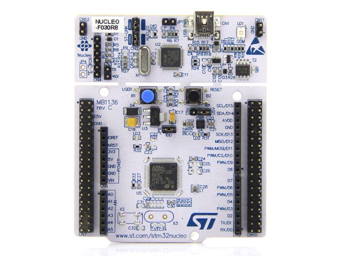 The STM32 Nucleo board provides an affordable and flexible way for users to try out new ideas and build prototypes with any STM32 microcontroller line, choosing from the various combinations of performance, power consumption and features. The Arduino™ connectivity support and ST Morpho headers make it easy to expand the functionality of the STM32 Nucleo open development platform with a wide choice of specialized shields.