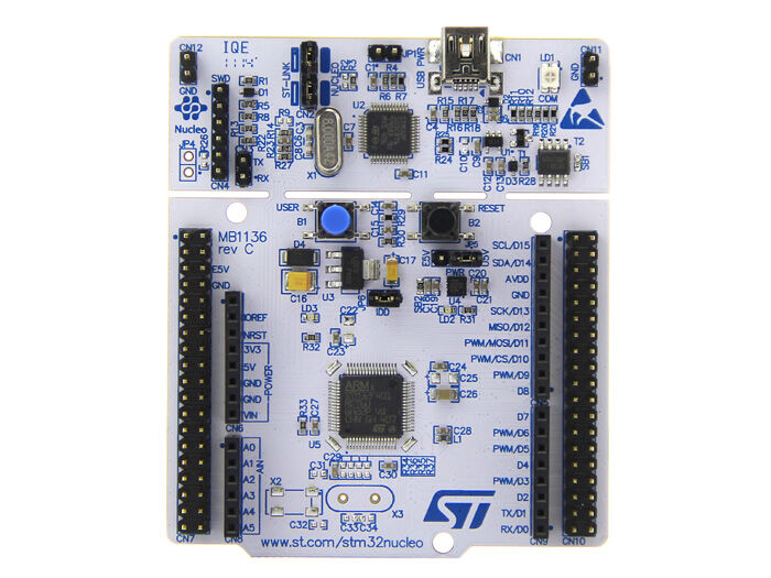 The STM32 Nucleo board provides an affordable and flexible way for users to try out new ideas and build prototypes with any STM32 microcontroller line, choosing from the various combinations of performance, power consumption and features. The Arduino™ connectivity support and ST Morpho headers make it easy to expand the functionality of the STM32 Nucleo open development platform with a wide choice of specialized shields.