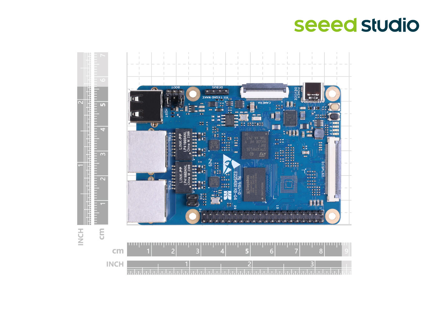 • Versatile Connectivity: Offer two 10/100M Ethernet ports, ETH0 supports WoL function, 1x USB Type-A, 1x CSI 30p FPC Connector, 1x LCD 40p FPC Connector, and 40-pin GPIO for fast data transfer