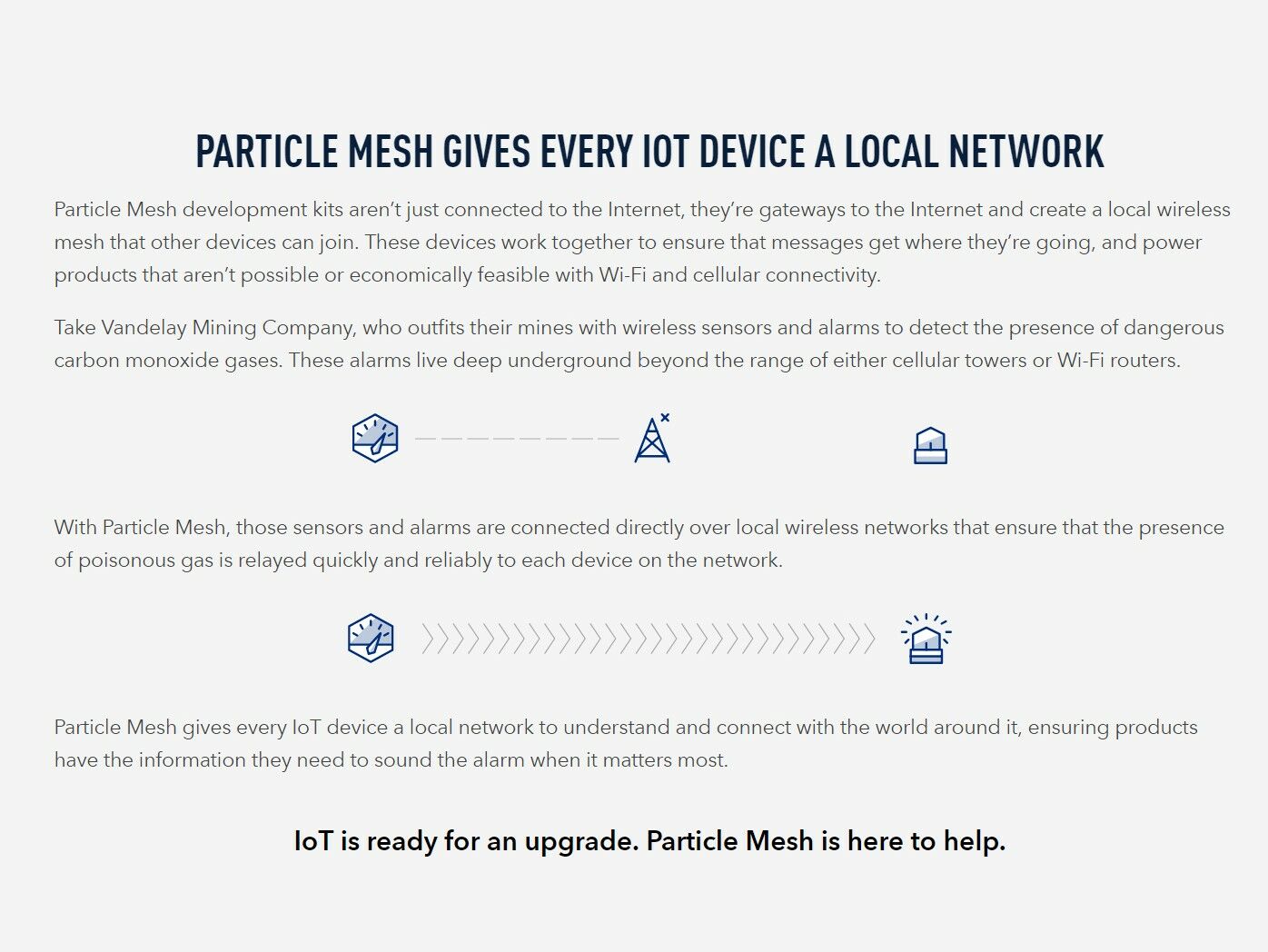 All Particle Hardware is designed from the ground up to work with the Device Cloud; a powerful set of tools and infrastructure to build, connect, and manage your IoT fleet. The Device Cloud for Particle Mesh is priced by network. All Particle customers get 10 free micro networks using a Wi-Fi or Ethernet gateway. A micro network is defined as a network with 10 total devices and a single gateway. Please refer to our pricing documentation for more information.