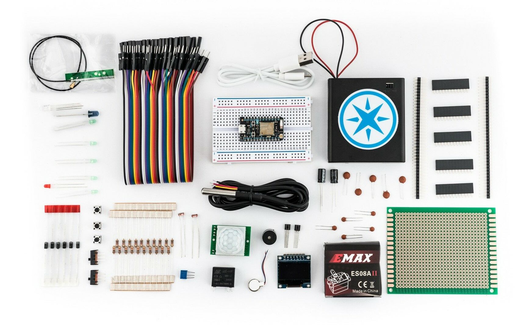 The Maker Kit comes with enough jumper wires, LEDs, resistors and more to make sure you can can build multiple different types of projects. It also comes with a super-neat project carrying case so you can put tidy up your workspace when you're done building.