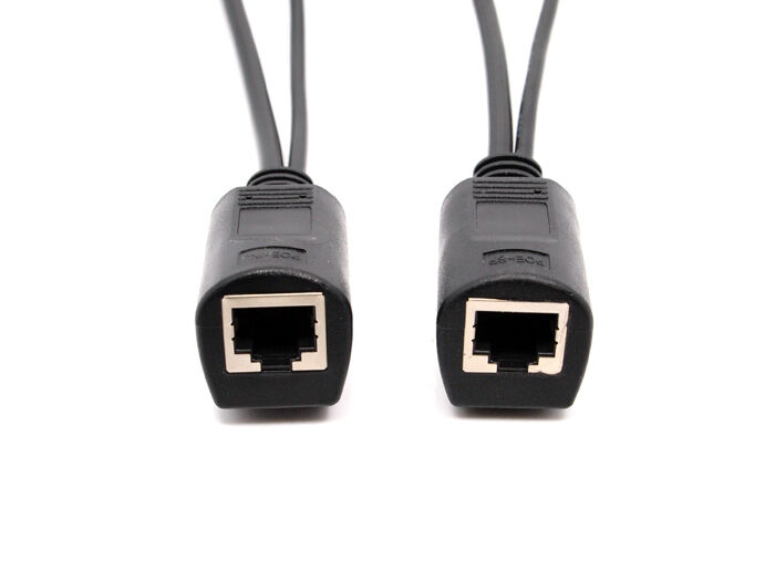 This product comes in a pair. Each has a female RJ45 on one side, and on the other side is a male RJ45 and a splitter jack or an injector plug.