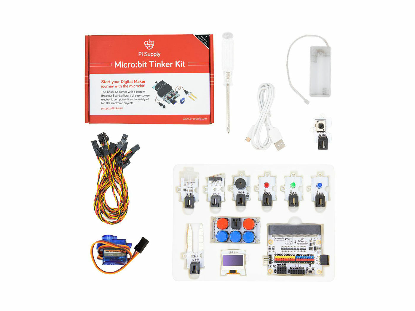 The Pi Supply micro:bit Tinker Kit is a set of micro:bit accessories that enables you to connect all kinds of modules easily to help you learn about coding and physical computing. The kit comes with ten different modules that are all designed to be controlled via the BBC micro:bit.