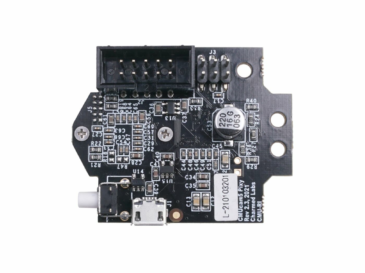 Pixy2 is a plug-and-play smart vision system for Arduino-compatible devices, Raspberry Pi, or other microcontrollers/computer systems. It can export its information in a variety of useful ways – UART serial, SPI, I2C, digital output, or analog output – so your microcontroller or microcomputer can easily communicate while doing other tasks.