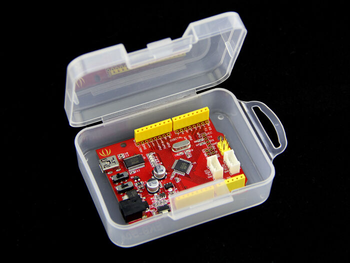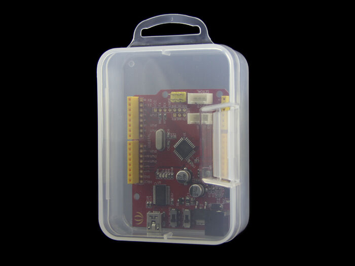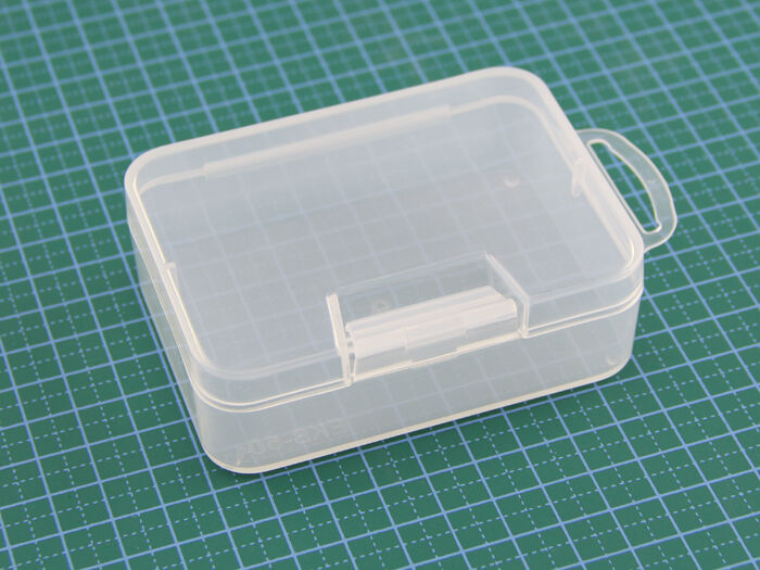 This is a credit-card-sized transparent plastic storage box. You may find it fit well with your microcontrollers, teabags, or a 90s style beeper.