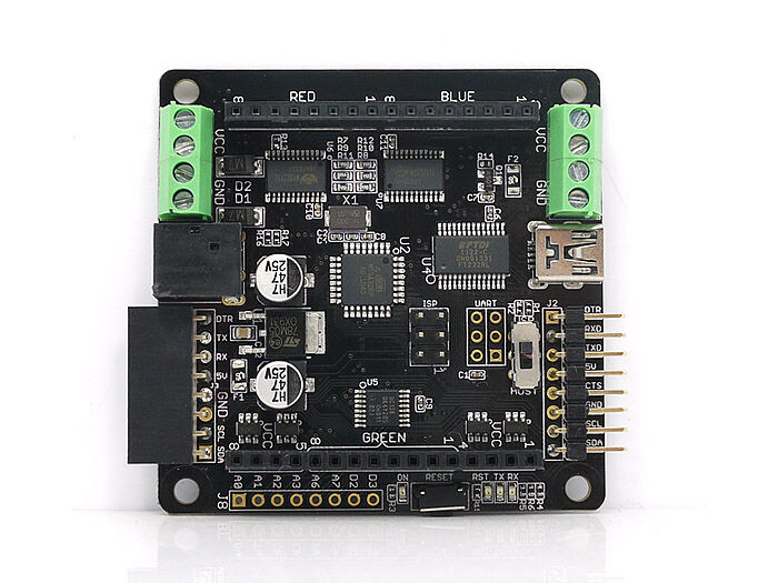 Rainbowduino v3.0 is flashed with Arduino boot-loader and this makes it easy to program sketches using Arduino IDE. Unlike other LED drivers, this comes with a USB to UART (FT232RL) inbuilt for programming the sketches.