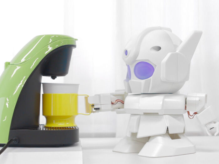 Rapiro is a DIY model robot kit for hobby and education in sofeware engineering and robotics area. A cute, affordable, easy-to-assembled humanoid robot kit comes with 12 servos and servo control board (Arduino compatible). It’s designed for Raspberry Pi and its camera module. Looks small, acts large, all its limitless possibilities depend on how you program it. Rapiro is manufactured by Switch Science.
