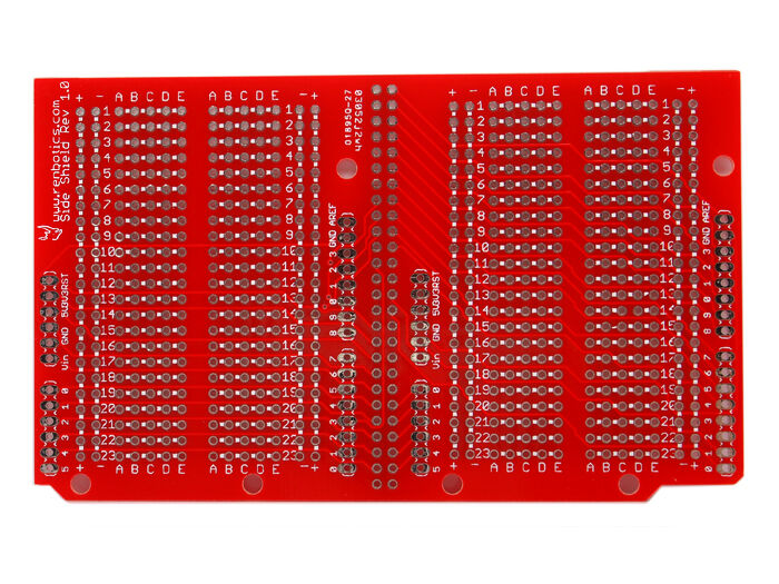 The Renbotics Side Shield makes it easy to extend your Arduino shield stacking sideways, remap conflicting pins between shields, and simplify using 3.3V shields with 5V Arduino’s or compatible.