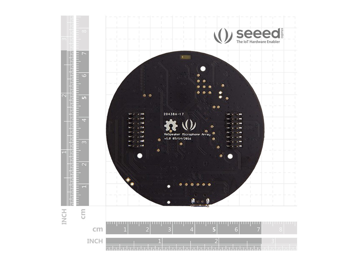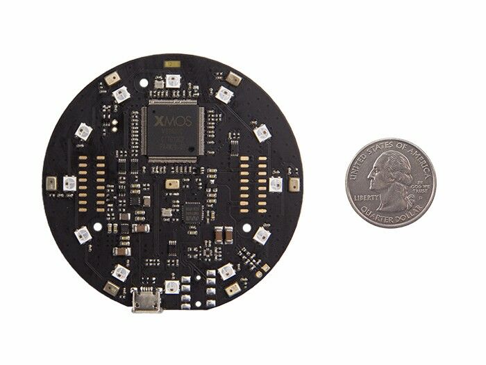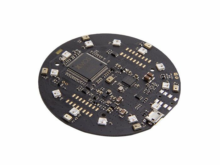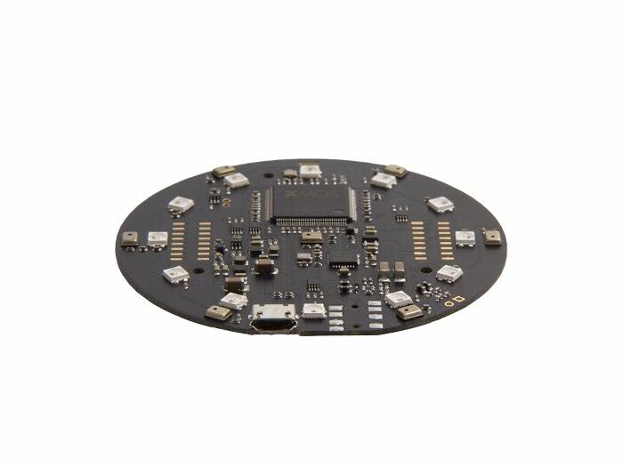 The ReSpeaker Mic Array can be stacked (connected) right onto the top of ReSpeaker Core to significantly improve the voice interaction experience. It is developed based on the XVSM-2000 Smart Microphone from XMOS. The board integrates 7 PDM microphones to help enhance ReSpeaker's acoustic DSP performance to a much higher level. With the Mic Array attached onto the top of the ReSpeaker Core, ReSpeaker is now able to: