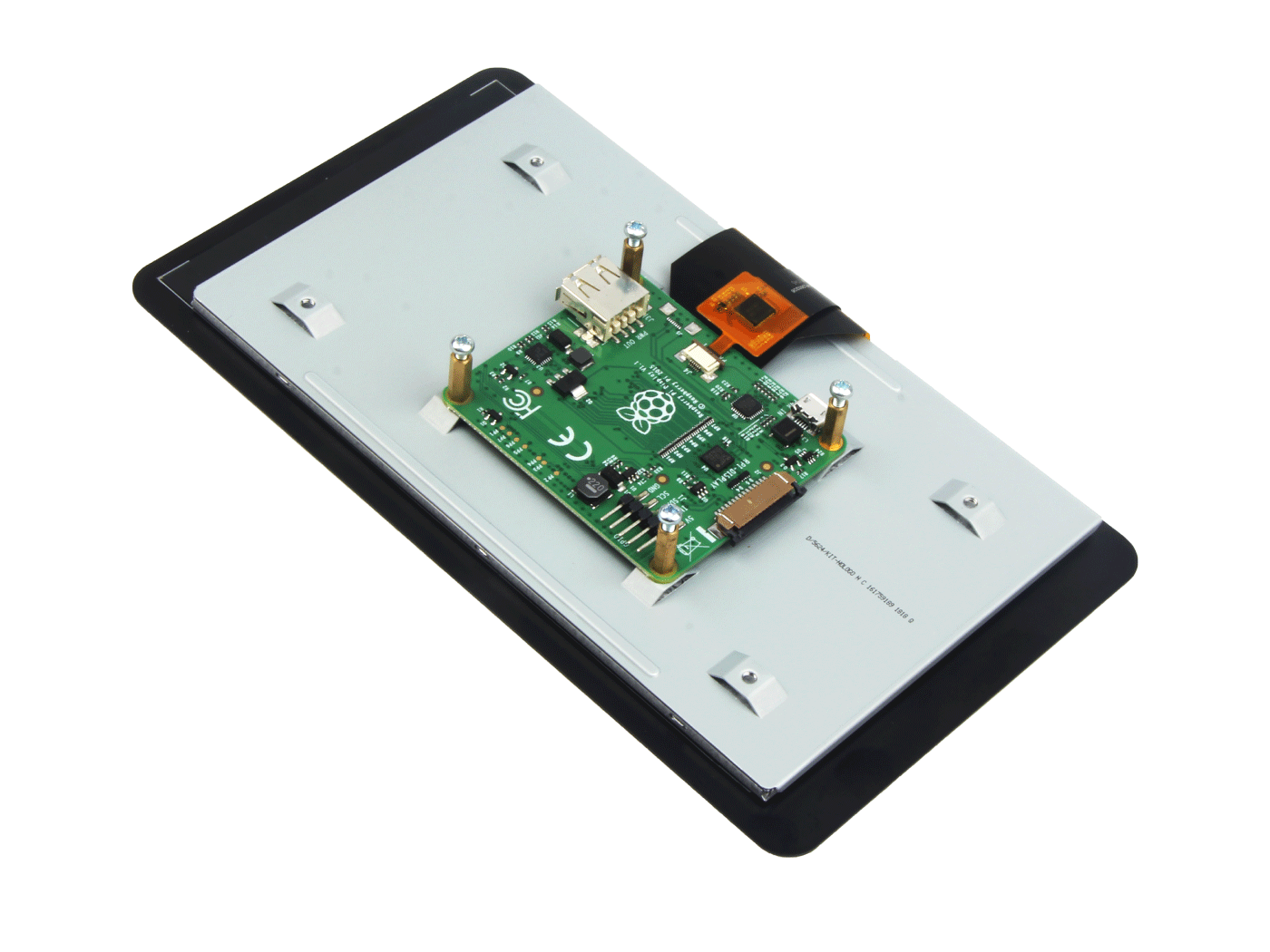 • Connects to the Raspberry Pi board using a ribbon cable connected to the DSI port.