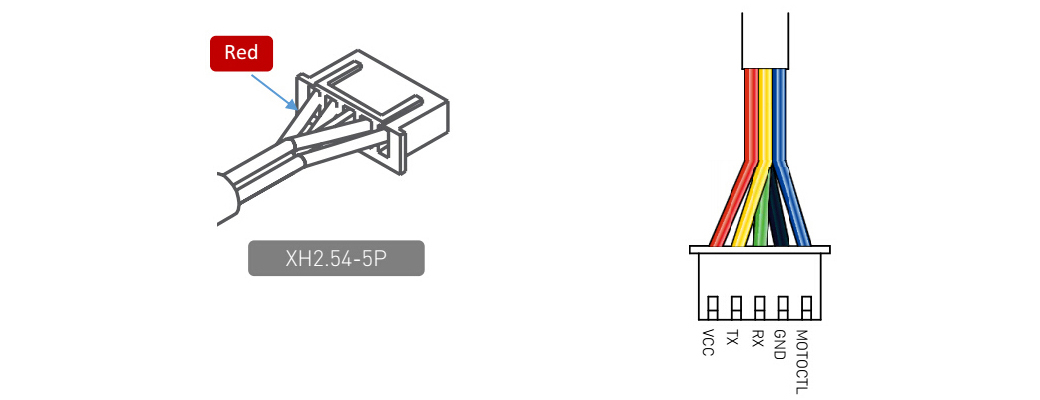 The RPLIDAR A2 uses separate 5V DC power for powering the range scanner core and the motor system. And the standard RPLIDAR A2 uses XH2.54-5P male socket. Detailed interface definition is shown in the following figure:
