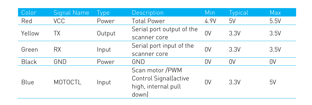 RPLIDAR External Interface Signal Definition