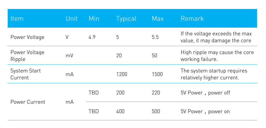 The detailed specification about power and communication interface can be found in the following sections.