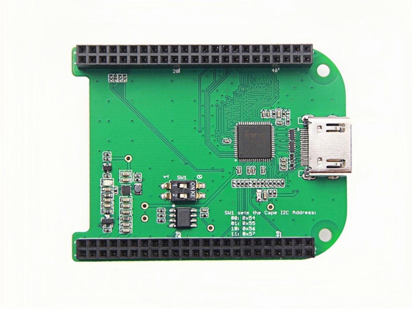 Seeed Studio BeagleBone® Green HDMI Cape is a general integrated HDMI connector for expanding your BeagleBone® to a rich variety of peripherals such as a computer monitor, a video projector, a digital television, or a digital audio device. This board features a standard HDMI receptacle that can be connected to a monitor with a standard HDMI-to-HDMI cable. All HD signals are supported, and the output resolution is 1280×720. It also can be used to transmit audio information. This product will make your applications based on BeagleBone® board more versatile for different occasions.