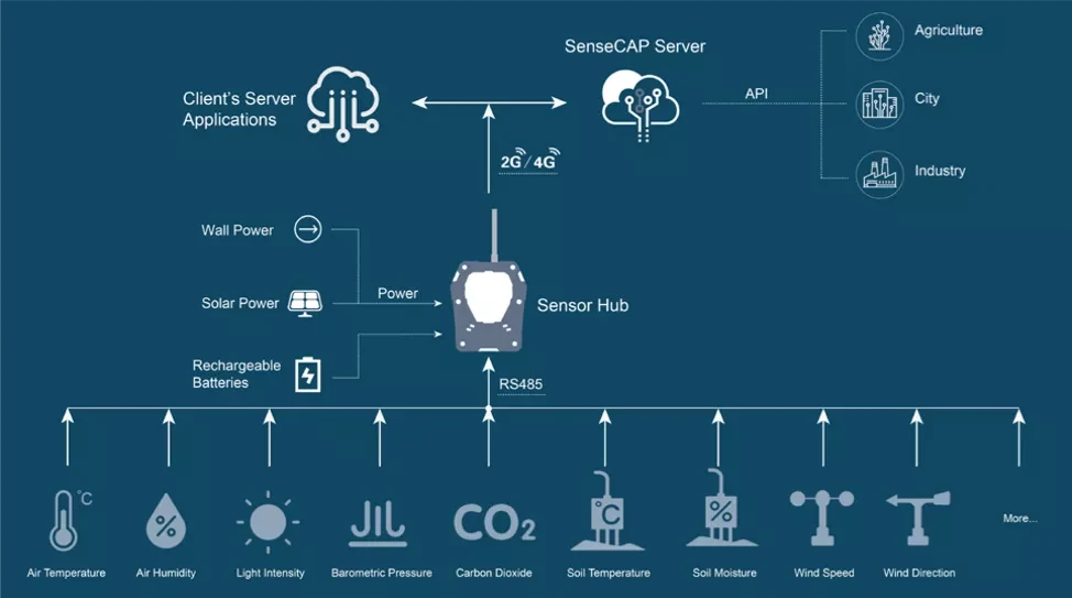 Powered by the SenseCAP Sensor Hub 4G Data Logger with Diverse Wireless Connectivity Options
