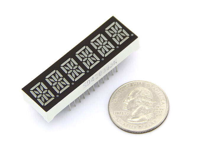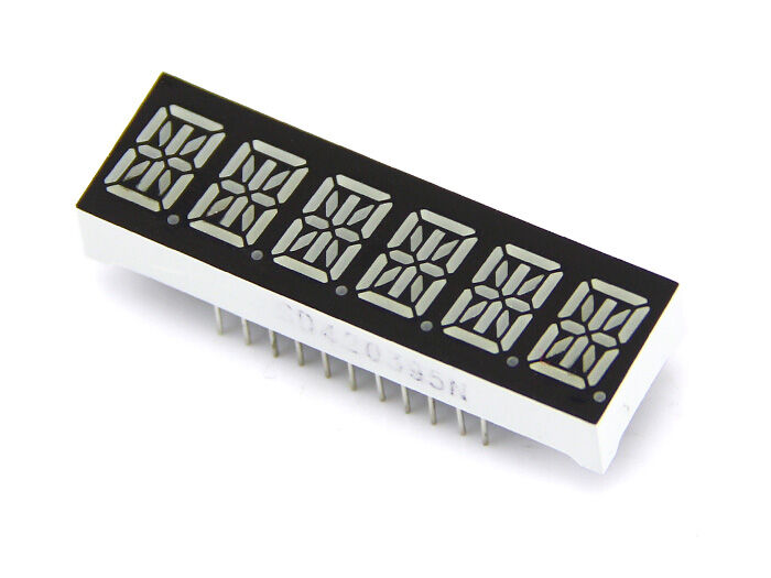 This is a 14 segment LEDs which have six alphanumeric and the color is amber.