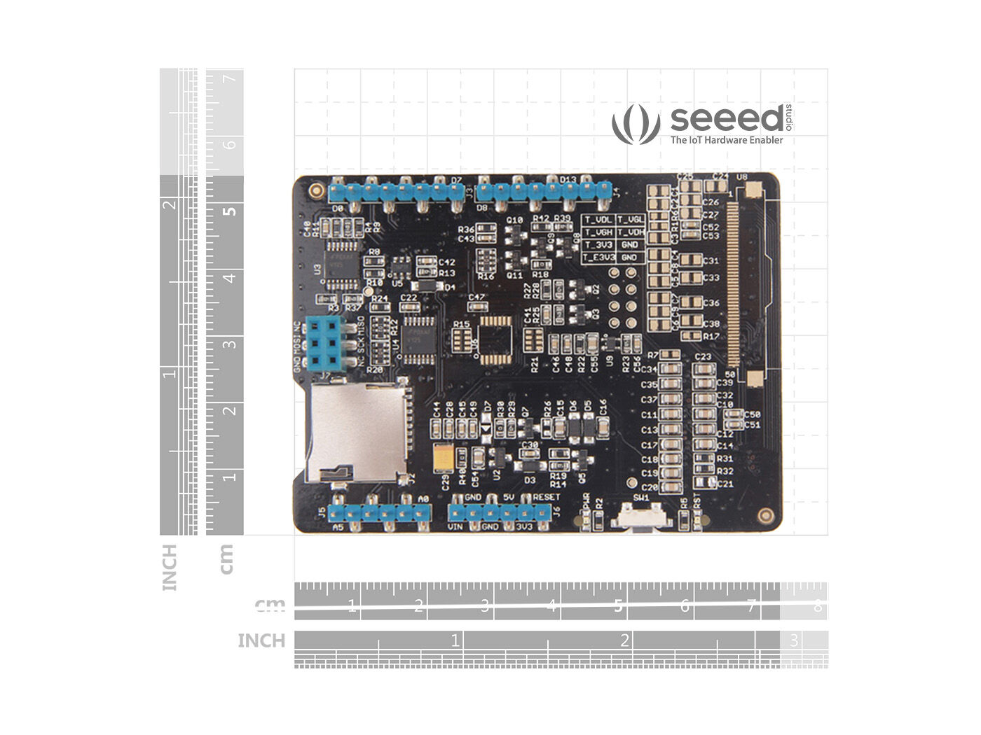 Small e-paper shield is a driver shield for e-paper of 2.0 inch and 2.7 inch sizes. It is used for displaying texts, graphics and images and supporting more than 170 languages. The upper surface of the shield is flat and clean, which gives great support to the e-paper attached on it.