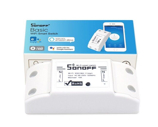 Sonoff Basic is an affordable WiFi smart switch that provides users with smart home control. It is a remote control power switch that can connect to a wide range of appliances. Sonoff Basic WiFi electrical switch transmits data to a cloud platform through the WiFi Router, which enables users to remotely control all the connected appliances, via the mobile application eWeLink. The server is Amazon AWS global server.