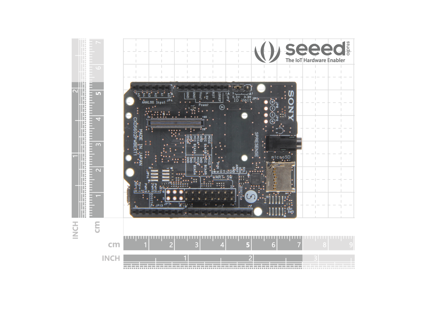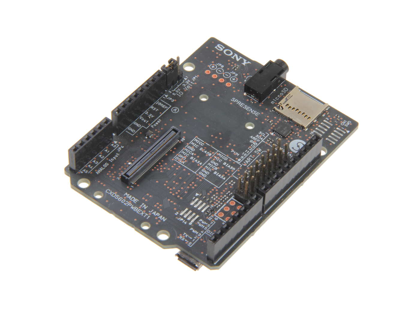 The Spresense extension board has the following connectors in addition to Arduino Uno compatible pin sockets.