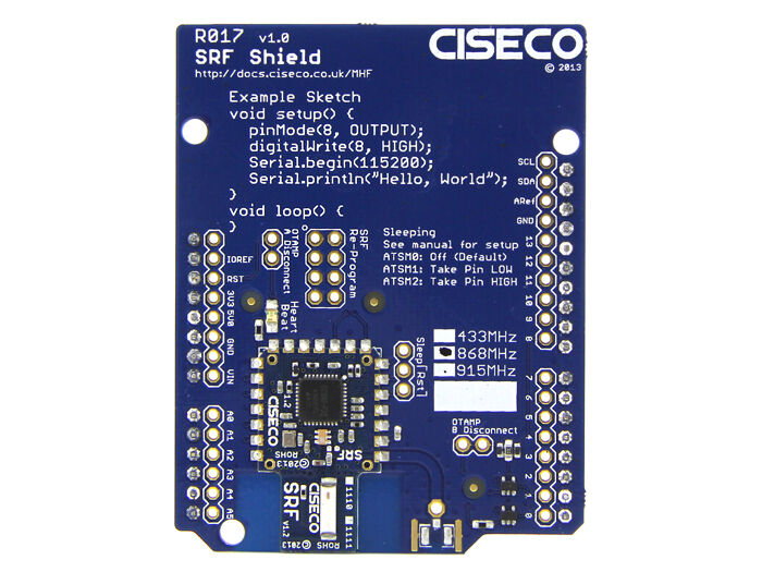 The Ciseco SRF shield is a low power wireless transceiver aimed at building wireless sensors and actuators