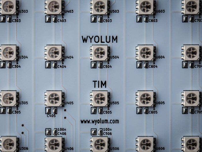 The intellegent Matrix is a 8×16 (128) array of smart RGB pixels that can be controlled from a single microcontroller pin!