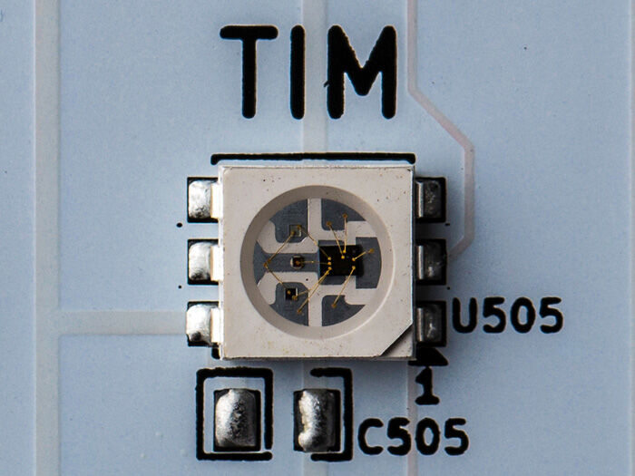 Control each board with 1 microcontroller pin (series mode, 128 RGB LEDs) OR -