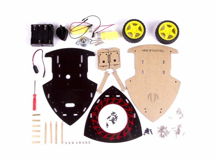 To make the bot more powerful, you can fix an Arduino board and breadboard as the heart of the robot in the 2nd floor and each shore can be fixed 1-2 plug-n-play Grove modules as the wings of the robot to strengthen the functions accordingly, such as RGB LED and ultrasonic Grove module. The supply voltage of Tricycle Bot is provided by a 12V battery holder.