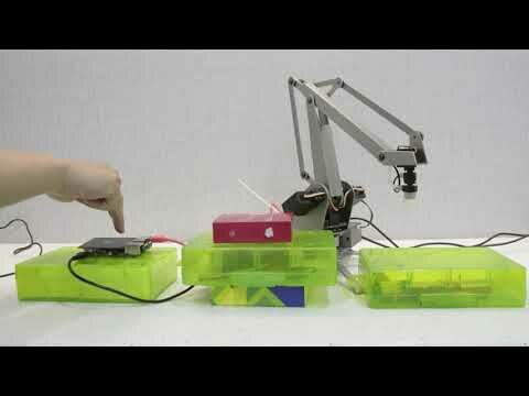 uArm is an Arduino-powered desktop 4-axis parallel-mechanism robot arm, modeled after the ABB industrial PalletPack robot. The new uArm is made of metal, powered by smaller-sized but more powerful servos, and controlled by an Arduino-compatible board. In parallel-mechanism robot arm, most of the masses concentrate on the base, making the robot much more stable and allows the upper Arm to react really fast.