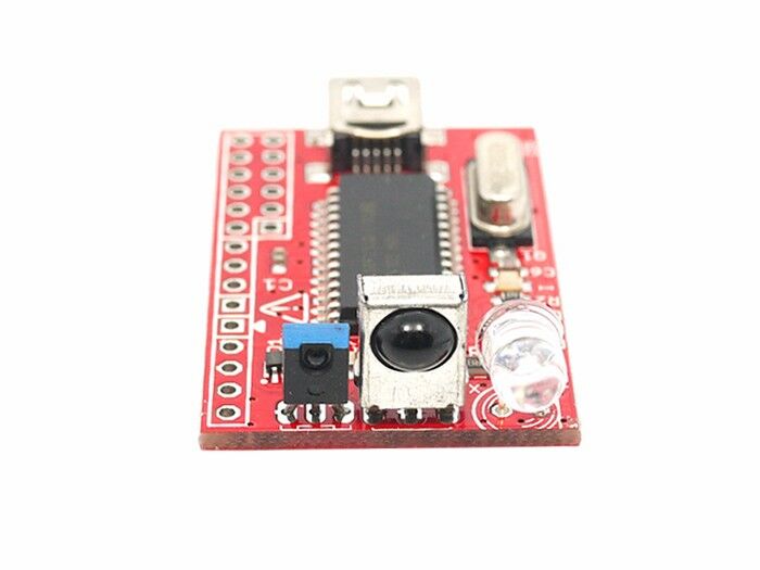 Assembled USB infrared remote control receiver/transmitter v2 designed by DangerousPrototypes.com. Use a remote control with your computer, view infrared signals on a logic analyzer, capture and replay remote control buttons, and play TV POWER codes.