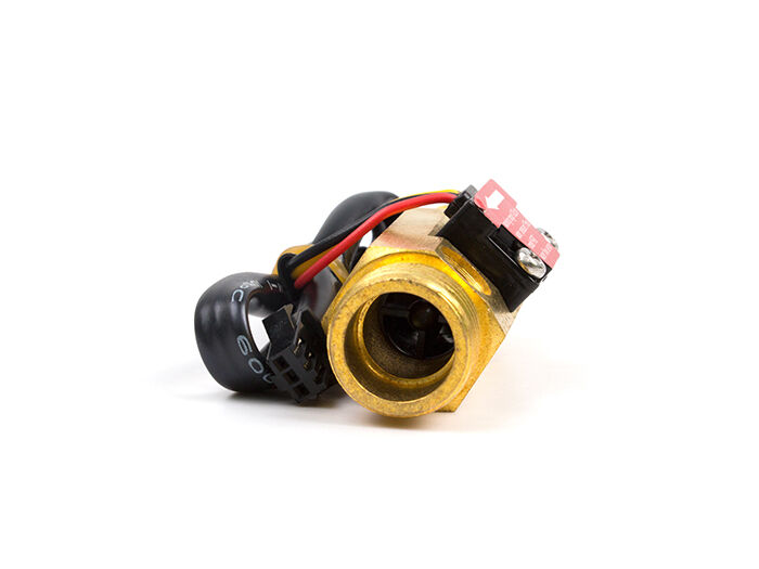 Water flow sensor consists of a copper body, a water rotor, and a hall-effect sensor. When water flows through the rotor, rotor rolls. Its speed changes with different rate of flow. The hall-effect sensor outputs the corresponding pulse signal. This one is suitable to detect flow in water dispenser or coffee machine.