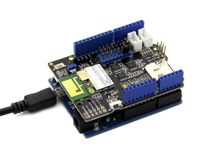 Wifi shield (Fi250)is a economic internet solution with Arduino. The Wi-Fi module support IEEE 802.11b/g/n mode, maximum speed up to 65Mbit/s. Wifi shield (Fi250) combine on board antenna; it’s easy to build you project in a small box. The module reserve a UFL connector, you can use an extra antenna to improve the signal range. There is a key on the board, just push one time to change wifi shield as AP mode. The module have a computer interface software, you can control and upgrade the module via USB-UART convertor. The wifi shield contain a Micro SD card socket, it’s like a recorder when wifi shield working as TCP, UDP server.
