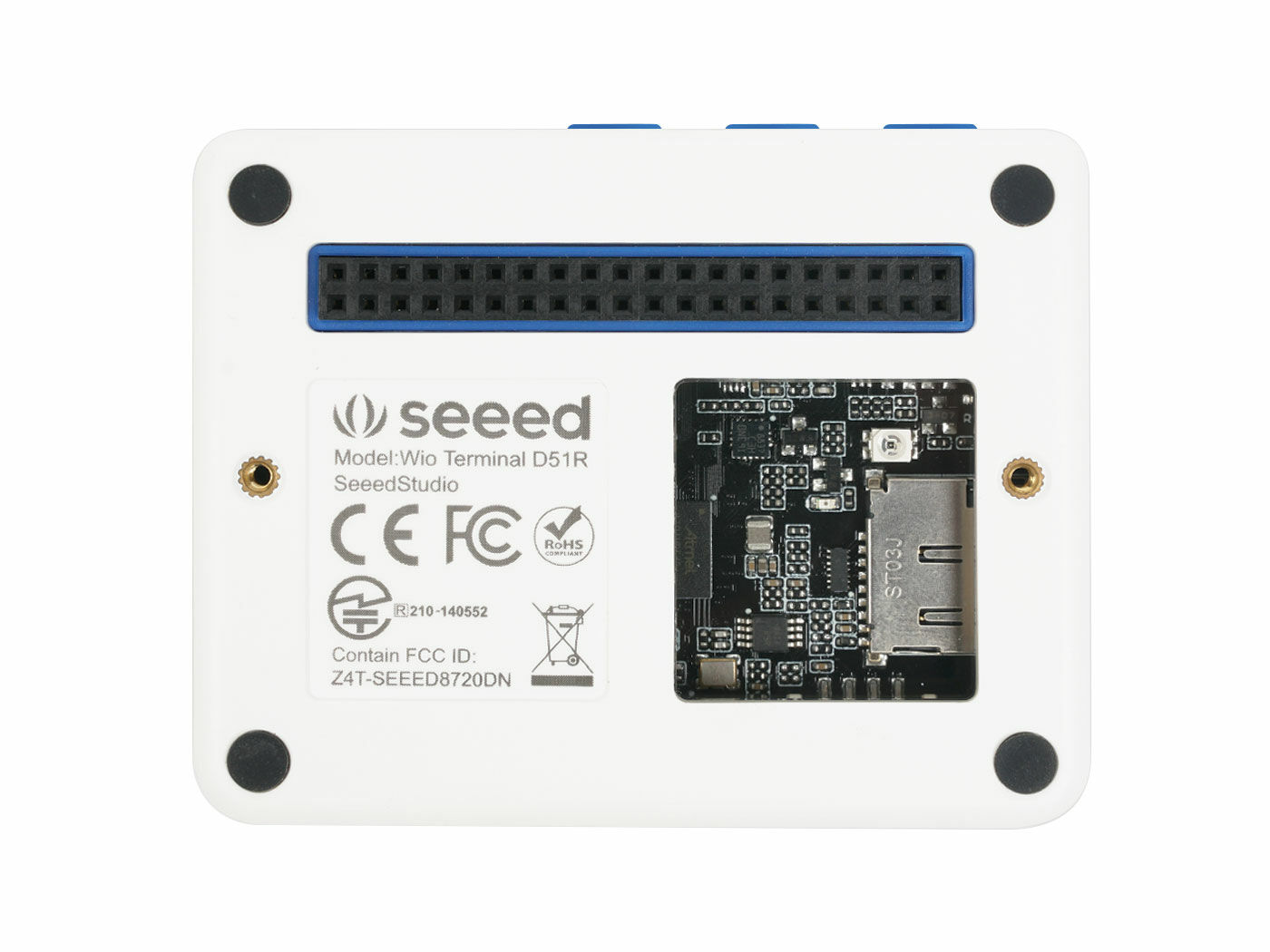 Wio Terminal is an ATSAMD51-based microcontroller with both Bluetooth and Wi-Fi Wireless connectivity powered by Realtek RTL8720DN, compatible with Arduino and MicroPython. Currently, wireless connectivity is only supported by Arduino. More than just a single embedded functional module, Wio Terminal itself is integrated with a 2.4” LCD Screen, onboard IMU(LIS3DHTR), microphone, buzzer, microSD card slot, light sensor, infrared emitter(IR 940nm).On top of that, it also has two multifunctional Grove ports for Grove Ecosystem and 40 Raspberry pi compatible pin GPIO for more add-ons. All of these practical add-ons are carefully housed in a compact enclosure, making it an efficient and product-ready product. Equipped with Raspberry Pi 40-pin GPIO, it can be mounted to a Raspberry Pi as a slave device.