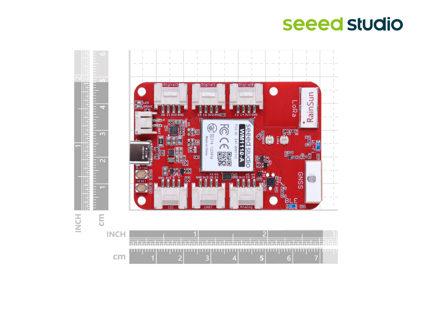 In addition to the onboard temperature and humidity sensor(SHT41) and 3-axis accelerometer(LIS3DHTR), it features a series of peripheral interfaces, and supports ADC/UART and IIC transmission protocols, which can be connected to 300+ Grove modules, enabling easy upgrades to smarter solutions.
