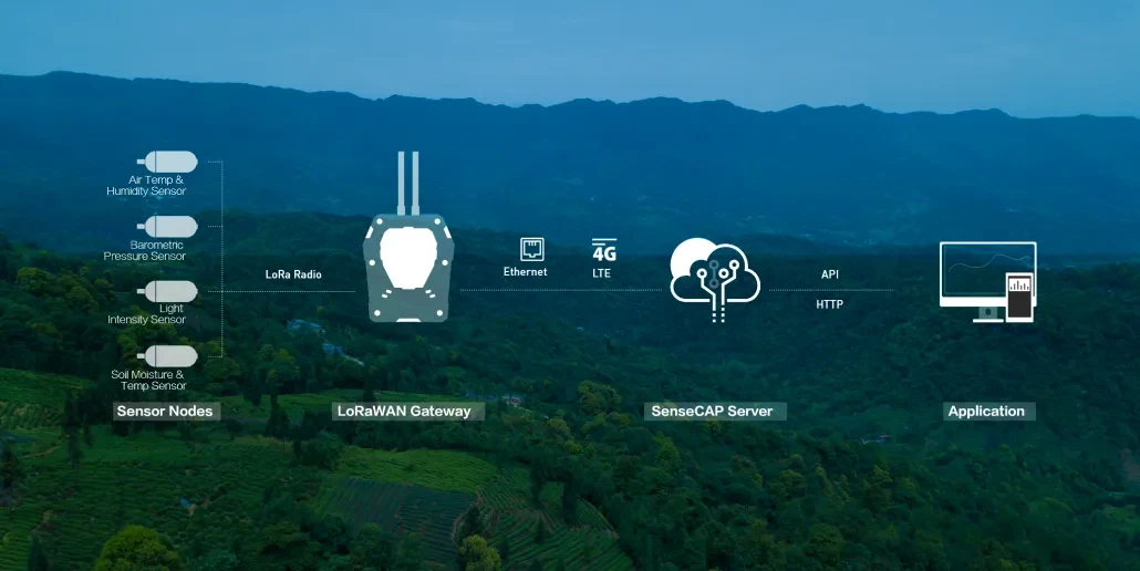 Thee SenseCAP Sensors consists of the sensor probes and the node. The sensor nodes contain a data logger that locally collects and saves environmental parameters. After a certain time, defined by the user, the Sensor Node transmits all the data it has collected to the gateway via the LoRaWAN protocoll.