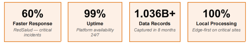 ▸ Ölçeklenebilir, Tekrar Edilebilir Mimari: Modüler tasarım, yeni binalara ve yeni cihaz türlerine hızlı genişleme imkanı sağlıyor. RedSalud, tek bir merkezi hesap altında 70’ten fazla tesise ölçekleniyor.